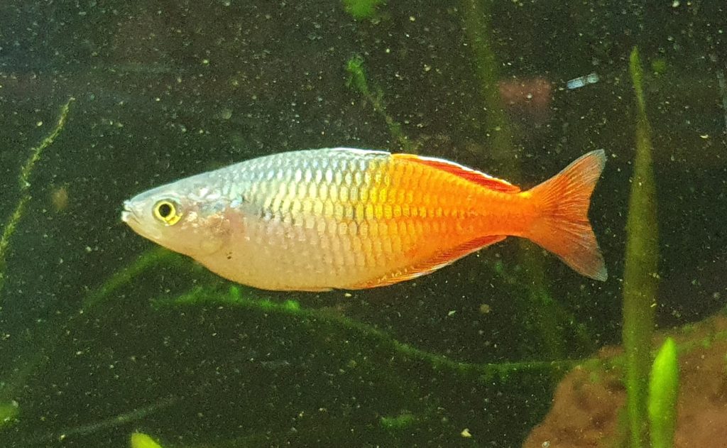 I augusti köpte jag fem Melanotaenia Lacustris, Kutubu-regnbåge, av Kent i Nol. De har sedan dess gett mig omkring 40 yngel som nu går på tillväxt här hemma.