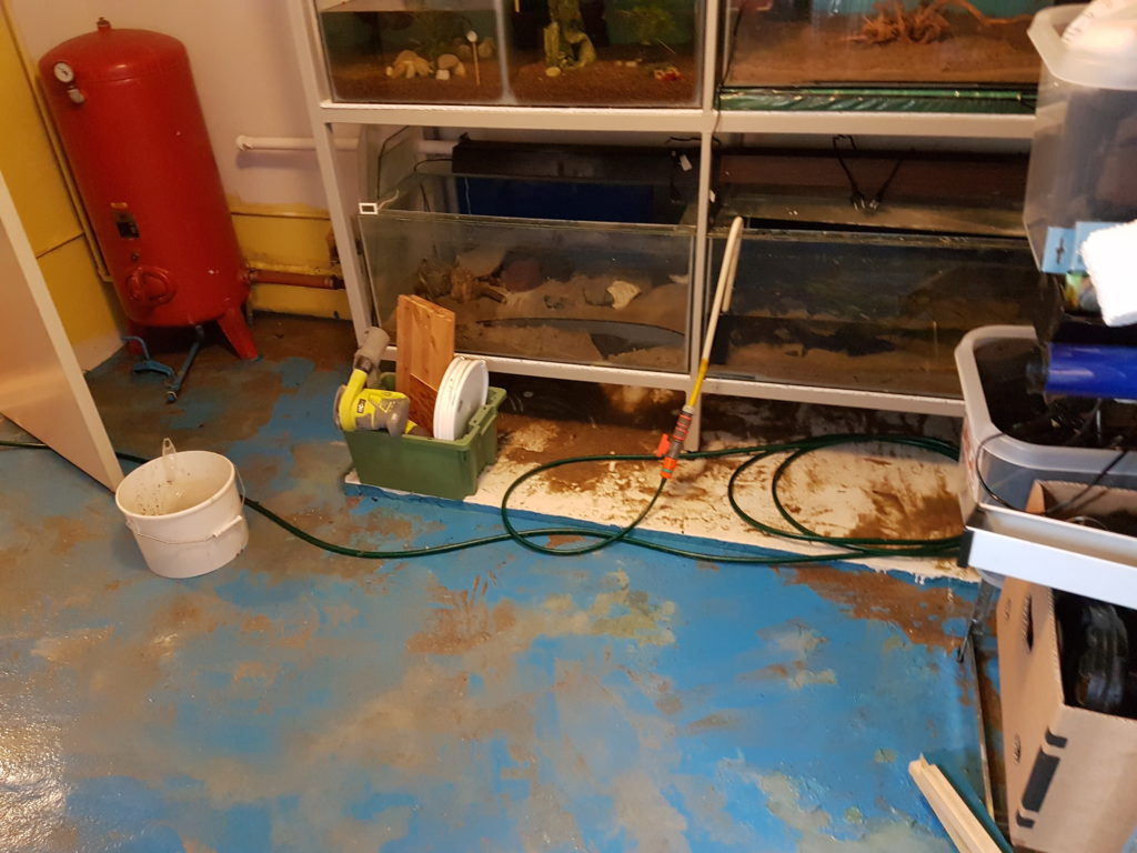 Jag skulle precis somna runt midnatt en lördag kväll då jag hörde ett ”krasch” och ett ”splash” från källaren. På med tofflorna och börja skyffla vatten… Tur att det var i källaren med golvbrunn, synd att golvet lutade bort från brunnen 😛